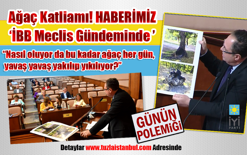 İBB Başkanvekili, İYİ Parti Tuzla ve İBB Meclis Üyesi, İnşaat Mühendisi Akın Gürkan “Ağaç Katliamı” haberimizi İBB meclis gündemine taşıdı.
