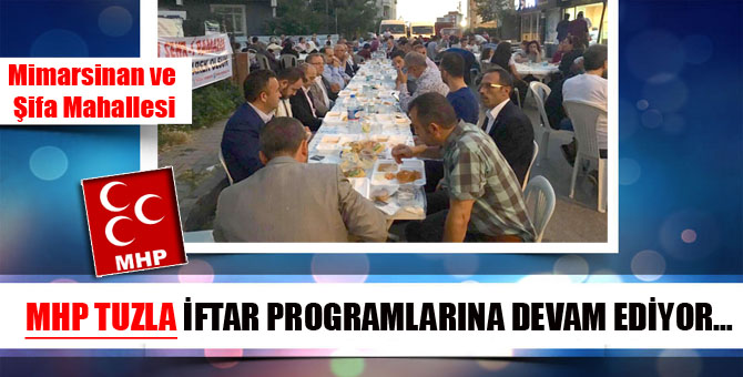 MHP Tuzla İlçe Başkanlığı, Aydınlı TOKİ Konutları'nda gerçekleştirdiği ilk iftarın ardından Evliya Çelebi, İçmeler mahallesi ve bugünde Mimarsinan ve Şifa mahallelerinde de halka açık iftar programı düzenledi.