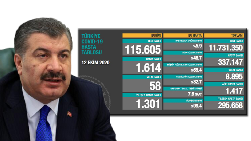 Virüs nedeniyle 58 kişi hayatını kaybederken, 1301 kişi iyileşti. Bugünkü verilerle toplam test sayısı 11 milyon 731 bin 350, toplam hasta sayısı 337 bin 147, toplam vefat sayısı 8 bin 895, toplam ağır hasta sayısı 1417, toplam iyileşen hasta sayısı 295 bin 658 oldu.